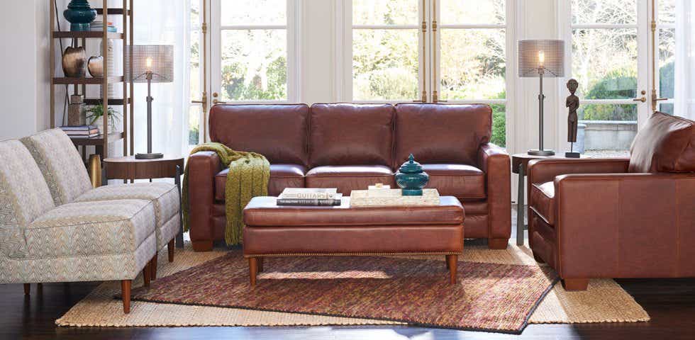 Though leather pieces are stylish enough to stand on their own, they partner perfectly with fabrics. Layer in accent chairs with a playful print or pattern to lighten the look of a room while also adding texture. Woven rugs and brightly colored throws create a striking contrast that enhances the clean lines and rich, supple finish of leather.