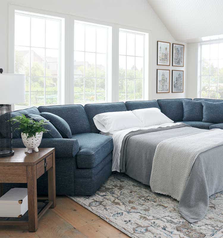 Plenty of seating plus a hidden queen mattress make our sectional sleepers a must for entertaining a crowd. But why wait for guests? With adjustable headrests, reinforced steel frames and our exclusive cross-wire system, our sleepers are designed for superior support and lasting comfort. Time for some major binge-watching.